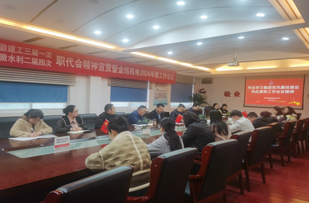 金结机电组织机关、各项目部对集团党风廉政建设和反腐败工作会议精神进行宣贯学习,公司领导班子、机关人员、项目部人员等共计50余人参加。