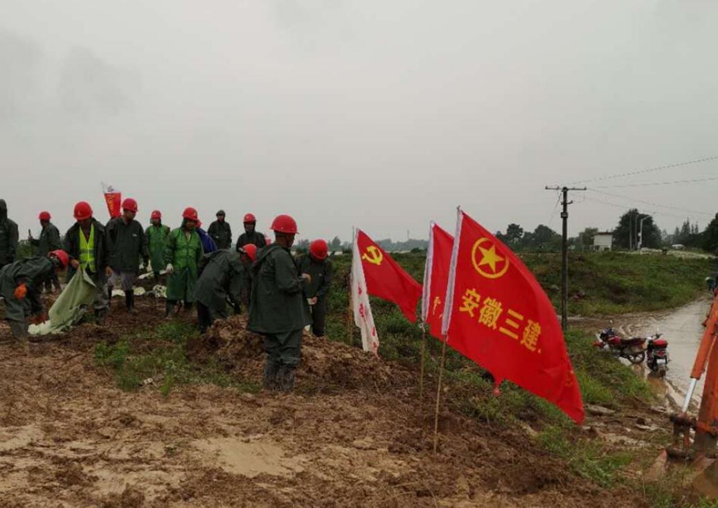 7月19日8:26分,接到合肥市城乡建设局紧急通知后,安徽三建迅速组建抗洪突击队前往庐江县白山镇金同联圩抗洪抢险。突击队连续奋战16小时至凌晨,成功化解险情。