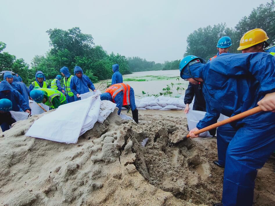 7月19日,安徽二建驰援南淝河防洪堤坝加固抢险