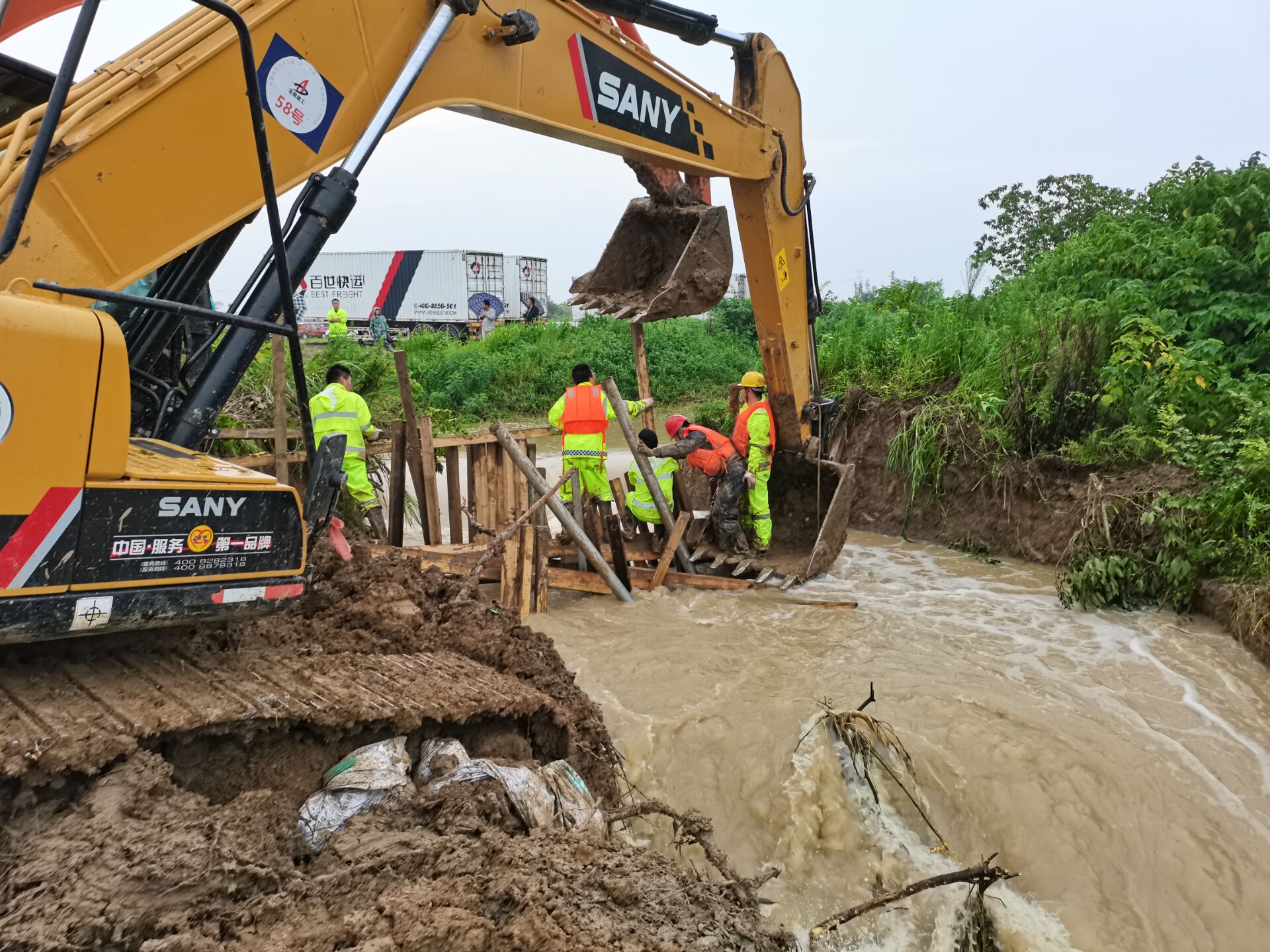 7月19日晚8时许,安建总承包公司怀宁PPP项目部接到怀宁县政府防汛抢险通知,迅速组派30多名党员和职工参与抢险救援,连续奋战至7月20日早晨6时左右成功排除险情。