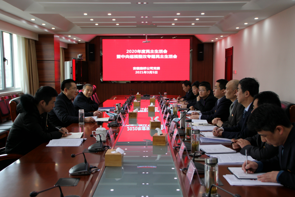 同日上午,刘家静赴安徽路桥参加指导2020年民主生活会暨中央巡视整改专题民主生活会。他强调,要旗帜鲜明讲政治,坚持把政治建设摆在首位,更加自觉的用习近平新时代中国特色社会主义思想武装头脑、指导实践,在提高“政治三力”上下功夫。要担当尽责抓落实,围绕集团2021年工作会议部署和“十四五”规划目标,精心谋划安排,进一步解放思想,把握行业、市场、政策导向,对标对表先进企业,创造性地开展工作,把工作实效体现在企业高质量发展和职工满意度上。要聚焦问题抓整改,认真梳理查摆出来的问题,拿出过硬措施,以钉钉子精神抓好整改落实。立足发展现状,围绕安徽省内路桥施工板块的龙头地位,开拓新的发展路径、方向,补足短板,增强优势,提升企业核心竞争力,确保“十四五”开好局起好步。
