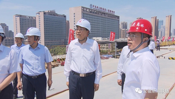 6月24日上午,省委书记李锦斌深入安徽路桥公司承建的畅通二环(西南环)金寨路、合作化路节点工程项目施工现场,对项目安全生产进行调研督导。他强调,要深入贯彻习近平总书记关于平安建设的重要论述和关于安全生产的重要指示精神,深入贯彻全国安全生产电视电话会议精神,把“防风险、保平安、迎七一”作为头等大事,以最高政治站位、最严工作要求、最强责任担当,推深做实省委“1+9+N”方案体系,全力做好安全稳定工作,确保社会大局持续和谐稳定,为建党百年营造良好氛围。省委常委、合肥市委书记虞爱华,省委常委、省委秘书长郭强陪同。