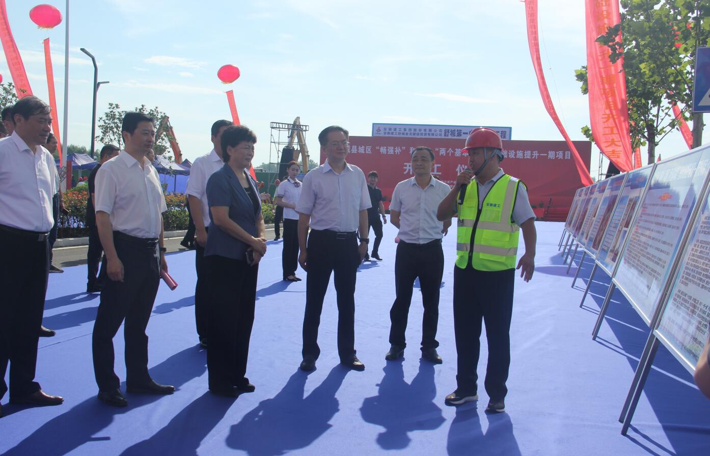 7月10日上午,舒城县城区“畅强补”和园区“两个基本满足”基础设施提升一期项目开工仪式在舒城一中迁建工程现场举行,建工控股党委副书记、总经理刘家静,建工控股党委委员、建工股份董事长王厚良出席仪式。六安市政协副主席、舒城县委书记张秀萍宣布项目开工。