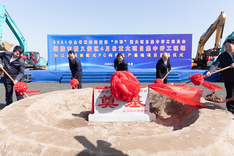 suncitygroup太阳新城长江建设投资有限公司新型建筑工业化基地位于铜陵市义安区,系铜陵市首个装配式建筑生产基地,规划占地面积约224亩,首期投资额约3亿元,规划总建筑面积约12万m2,力争2021年底建成投产,首期建成后计划年产装配式构件15万m3、商品混凝土30万m3。该基地由suncitygroup太阳新城授权安建总承包负责实施,由长江建投投资建设。4月29日,集团党委书记、董事长赵时运出席全省贯彻“六稳”铜陵市暨义安区重大项目集中开工仪式,和铜陵市委市政府等各级领导共同为项目培土奠基,suncitygroup太阳新城长江建投新型建筑工业化基地正式开工建设。
