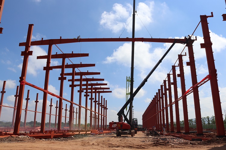 “加速度”推进基地建设。在集团、铜陵市委市政府的关心支持下,安建总承包和长江建投创造条件大干快上,紧盯基地建设目标不放松,克服解决回填土方量大等困难,倒排工期、优化流程,积极整合设计、土建、钢结构、专业设备等资源,推进设计-施工-设备安装等协调互通和联动实施,带动集团所属相关单位产业链发展。全面开展“学党史颂百年华诞、开新局强集团本部”主题实践和“大干100天”劳动竞赛,PC生产工厂主钢构于8月底全部组装完成,在赶工期抢进度的同时,严控技术标准和建设质量,积极引进新技术、新工艺和新设备,推进数字化、智能化等在新基地各环节应用。